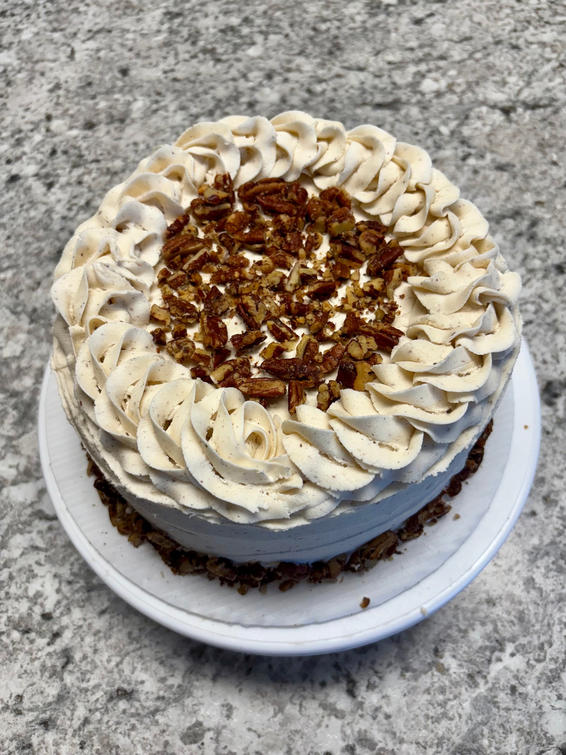 Honeybun cake comes in a medium size pan, all cakes are 8 inches round unless noted